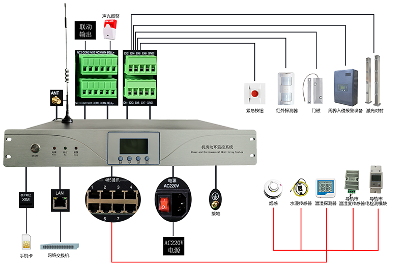 “我司最新研發的動環主機是一款集動力環境監控功能及入侵防盜報警于一體的設備,可實時監測機房、基站等場所的動力設備運行狀態、環境參數、入侵報警,如市電、UPS、蓄電池、溫濕度、煙霧、漏水、門禁、周界入侵等,實現故障報警、入侵報警、遠程監控等功能,保障場所內設備的穩定運行和環境安全”。